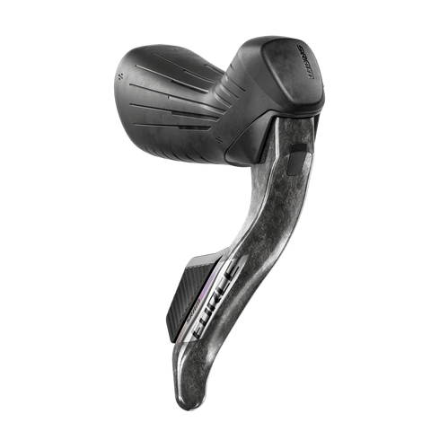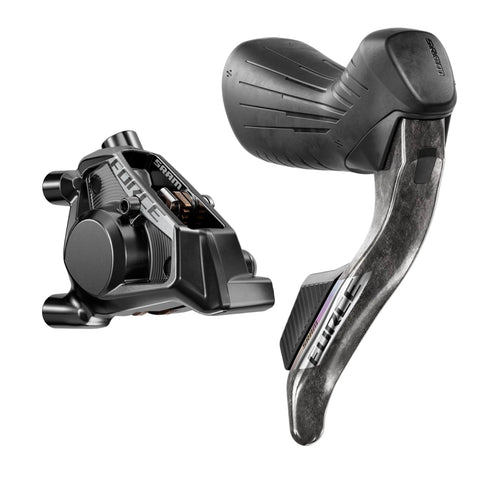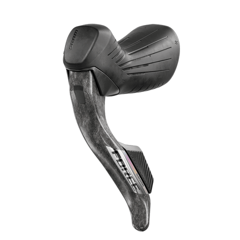 - One-finger braking from the hoods or the drops