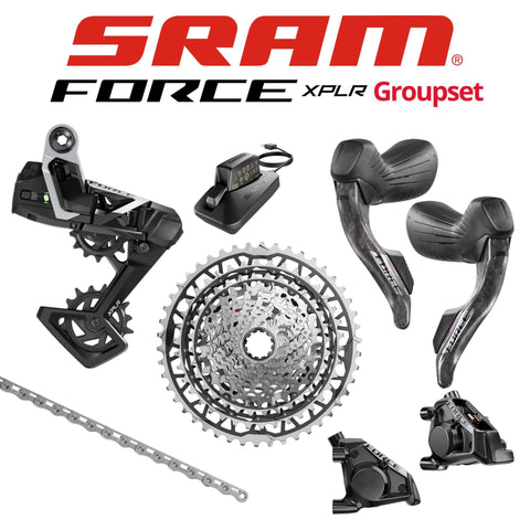 Discover the drivetrain engineered to match your passion for gravel adventure. The SRAM Force XPLR AXS Groupset represents the perfect fusion of durability and precision in a lightweight, high-performance gravel-focused platform. This revolutionary fully wireless 13-speed system transforms your ride with streamlined installation via the robust Full Mount derailleur technology and enhanced braking performance through redesigned control elements.