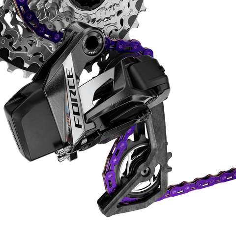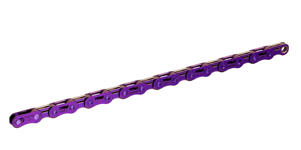 SRAM's Force Flattop CN-FRC-E1 chain is lighter, stronger and even more durable. Flattop technology creates a quieter, longer lasting chain for long rides and countless shifts. The Force chain is compatible with 12-speed road and 13-speed gravel cassettes.