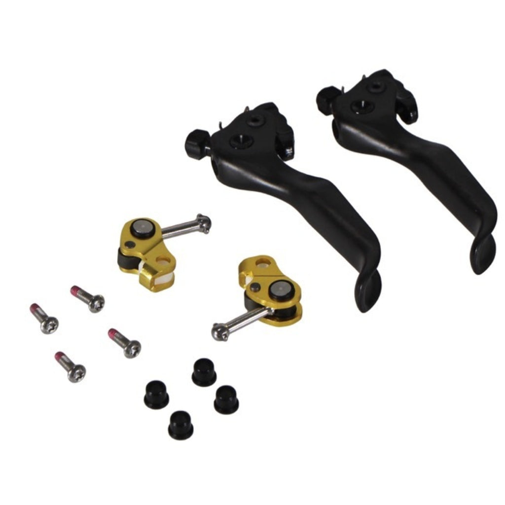 Le kit de réglage de leviers SRAM Maven ( DB-UPK-LVR-A1) inclut le SwingLink nouvelle génération de SRAM, qui offre une puissance plus linéaire pour un contrôle optimal et une sensation de légèreté au levier pour un confort ergonomique accru. Les nouveaux matériaux haut de gamme des leviers améliorent les points de contact clés, et l'outil fourni simplifie l'installation, même pour les bricoleurs, sans purge des freins. Chaque kit comprend deux leviers et deux SwingLinks, soit le nécessaire pour un système de freinage complet.