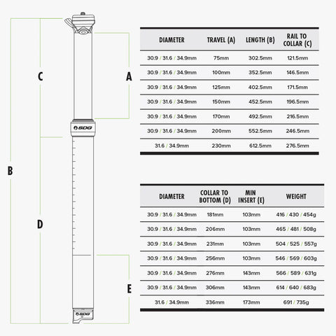 - Travel Options: 100mm, 125mm, 150mm, 170mm, 200mm & 230mm (31.6mm & 34.9mm ONLY)